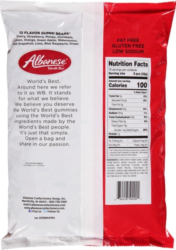 - Allergy Friendly Snack: Peanut free, tree nut free, dairy free, MSG free, gluten free, and with no artificial sweeteners, Albanese gummy candies are an allergen-friendly, fat free, low sodium treat packed with a sweet, fruity flavor