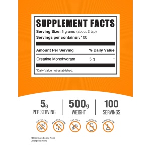 BULKSUPPLEMENTS.COM Creatine Monohydrate Powder – Creatine Supplement, Micronized Creatine, Creatine Powder – Unflavored & Gluten Free, 5g (5000mg) per Servings, 500g (1.1 lbs) (Pack of 1)