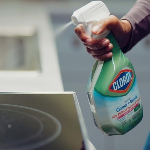 - BLEACH CLEANING SPRAY: Powerful spray with Clorox bleach provides spray coverage that cuts through germs and grime to remove tough kitchen and bath stains