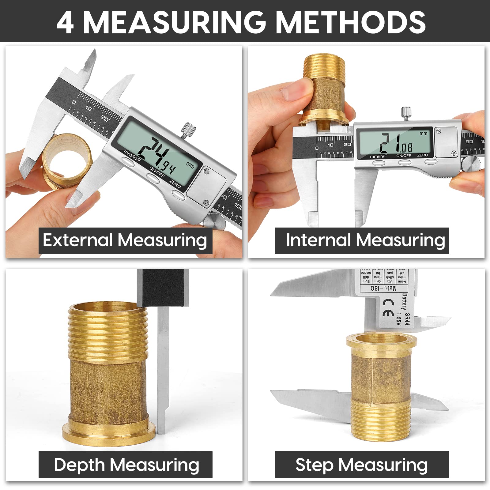• 【4 MEASUREMENT MODES】The caliper tool has 4 measurement modes, which can be used to measure inside and outside diameter, depth and step with two sets of jaws and a probe. Multiple measurement modes can bring more usage scenarios to people, and the measurement process is also very convenient.