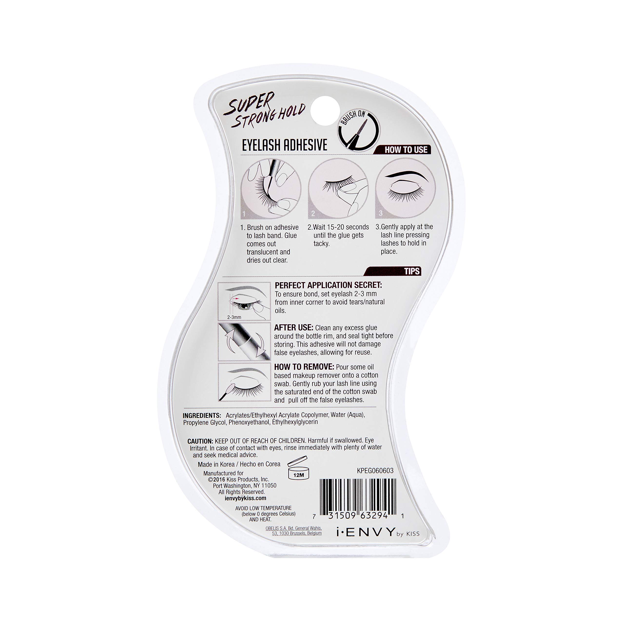 i-ENVY By KISS Super Strong Hold Eyelash Adhesive, Waterproof Long-Lasting Strip Lash Glue, Natural-Looking Allergy & Latex Free with Brush Applicator (Clear)