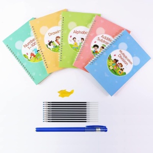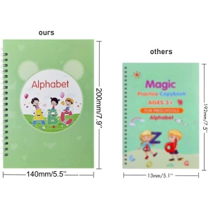 • Magic Practice Copybooks are much larger than other copybooks on the market. The package includes 5 magic practice copybooks for Kids (Addition,Multiplication,Numbers , Alphabet, Drawing) + 1 Pens + 1 Pen Holding Aids + 10 refills