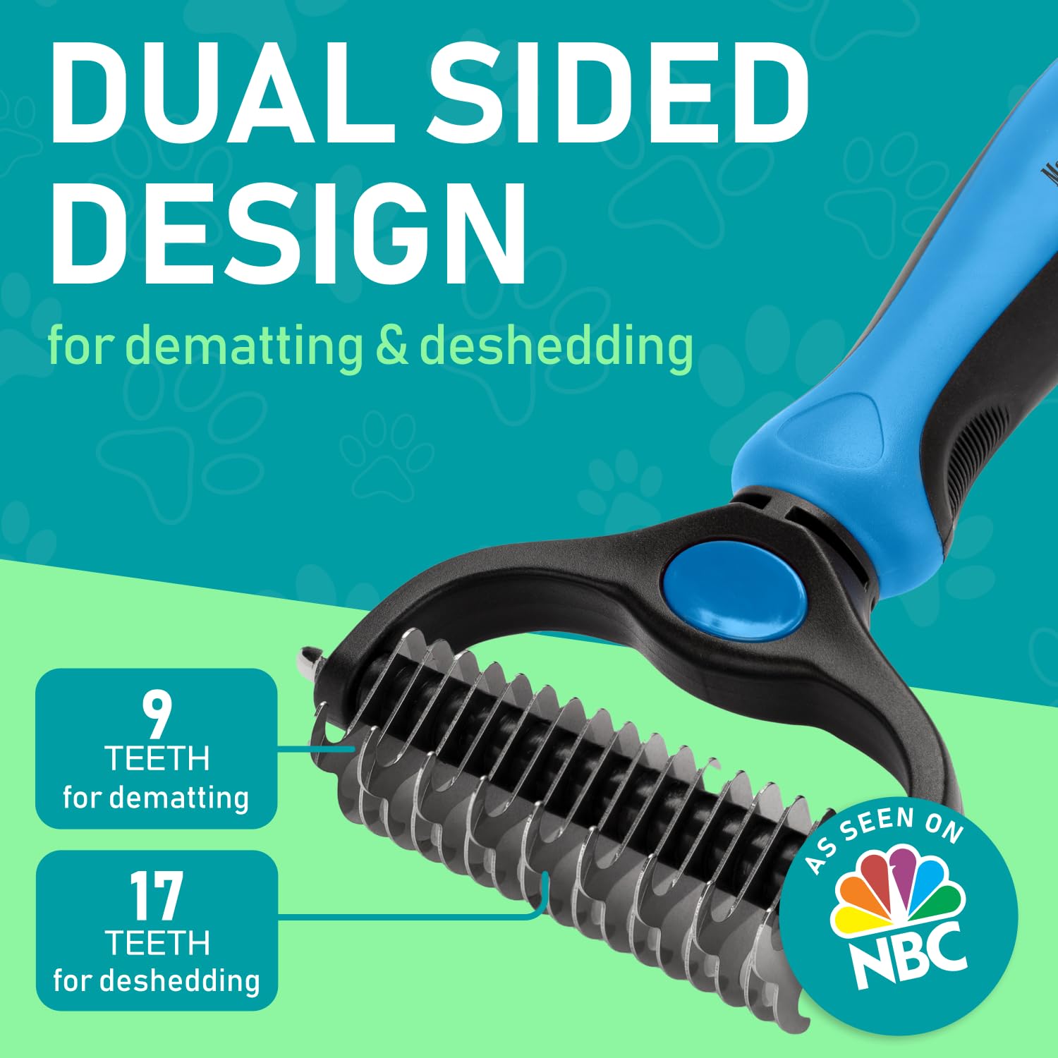 - DUAL-SIDED DESIGN: Our grooming brush is perfect for dematting and deshedding your pet’s coat! With a dual-sided design, use the 9-teeth side to tackle stubborn mats and tangles and the 17-teeth side to thin out and deshed your pet’s fur.