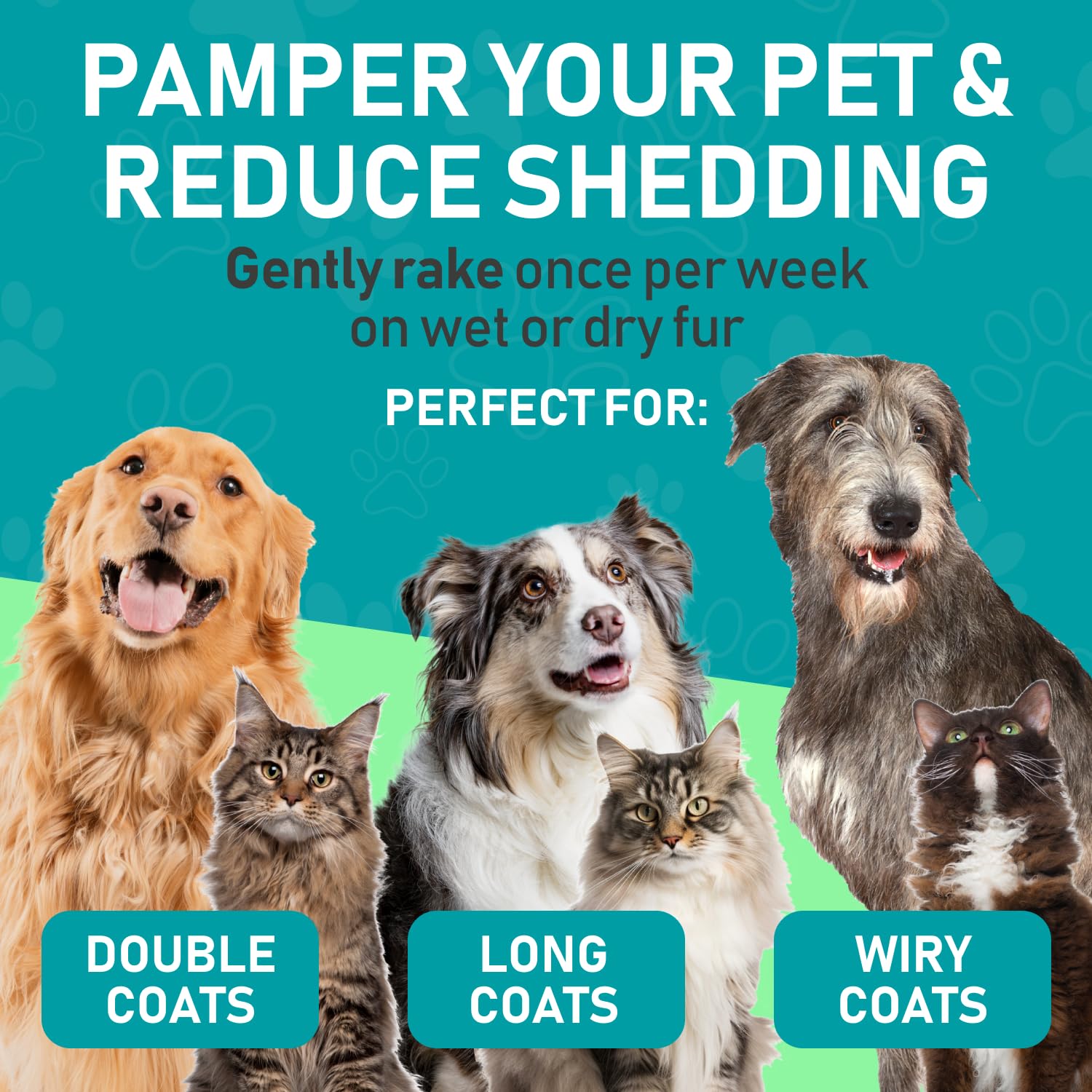 - EFFECTIVE DESHEDDING TOOL: Our dematting and deshedding tool gently removes loose hair and eliminates tangles, knots, dander, and trapped dirt. The perfect cat brush or dog grooming brush solution for pets with thick fur or dense double coats.