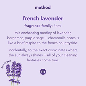 - French Lavender scent is an enchanting medley of lavender, bergamot, purple sage + chamomile, perfect for any château.
