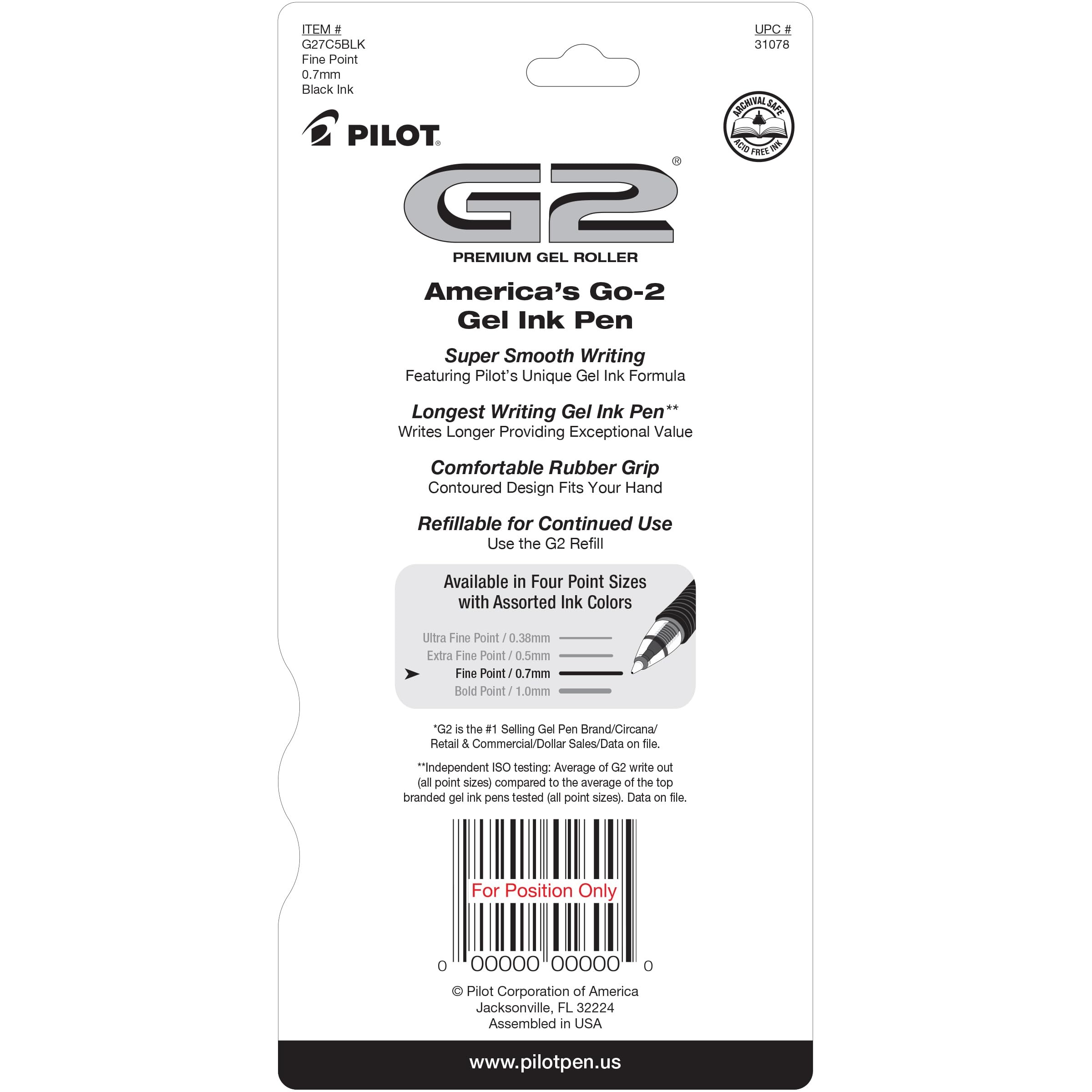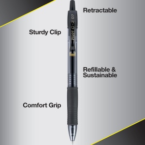 Details: From taking notes to journaling or drawing, G2 Gel Roller pens keep the ink and your ideas flowing. These long-lasting pens come in many color options and 4 tip sizes, so it’s easy to find one that caters to your writing needs and personal style. The quick-drying ink prevents smears and smudges, ensuring your work is neat and clear. Create masterpieces of writing or art with these thanks smooth-flowing gel pens that deliver vivid and clear lines. Perfect for your everyday writing needs, the 0.7 mm fine pen point size strikes a balance between fine and bold lines. Archival-safe and acid-free black ink is formulated to be long-lasting and fade-resistant, ensuring your documents last for a long time. The comfortable rubber grip offers ergonomic support, reducing hand fatigue and making lengthy writing projects a breeze. Pilot’s G2 line blends smooth writing with long-lasting ink, precision and comfort for an exceptional writing experience.