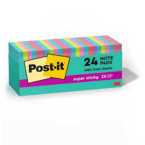Details: Ideas are out of this world with the electric colors of the Post-it Super Sticky Notes Supernova Neons Collection. Whether jotting down your daily to-do’s, brainstorming big ideas, studying or setting reminders, colors and ideas are always brighter together. These sticky notes feature 2X the sticking power. They also stick and re-stick – allowing you to move your notes with you throughout your day. They’re ideal for walls, doors, windows and other vertical surfaces, and like all Post-it Notes, they stick securely yet remove cleanly without damage. Keep your ideas across your notebooks, classroom books, calendars or other documents. No tape or tacks are needed with adhesive notes, saving you money and time on office products or school supplies. A great memo pad, these are ideal for using for notes or reminders to yourself or others. Post-it Super Sticky Notes are the perfect solution for shopping lists, reminders, notes on computer screens, time tracking, to-do lists, marking cables, color-coding documents, reminding kids to do chores, storyboarding, scratch paper and agile processing. Each notes sheet is approximately 3 in. x 3 in., with 70 sheets per pad and 24 sticky note pads per pack. These colorful sticky notes include colors from the Supernova Neons collection including aqua, lime, bright pink, coral pink and lilac. All Post-it Notes are sourced from certified, renewable and responsibly managed forests, and all Post-it Notes are recyclable, so you can recycle them when they are no longer needed.