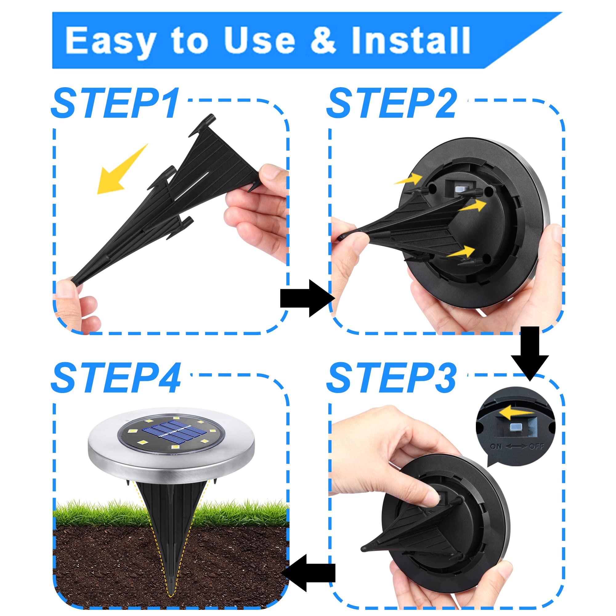 - 【Light up any place.】: Disk Lights provide perfect lighting for your courtyard, gardens, walkways, pathway, yard, driveway, lawns and corridors, etc. to add a beautiful night scene scene. Just place it where light is needed at night. No need to change cables or batteries, use free solar energy.